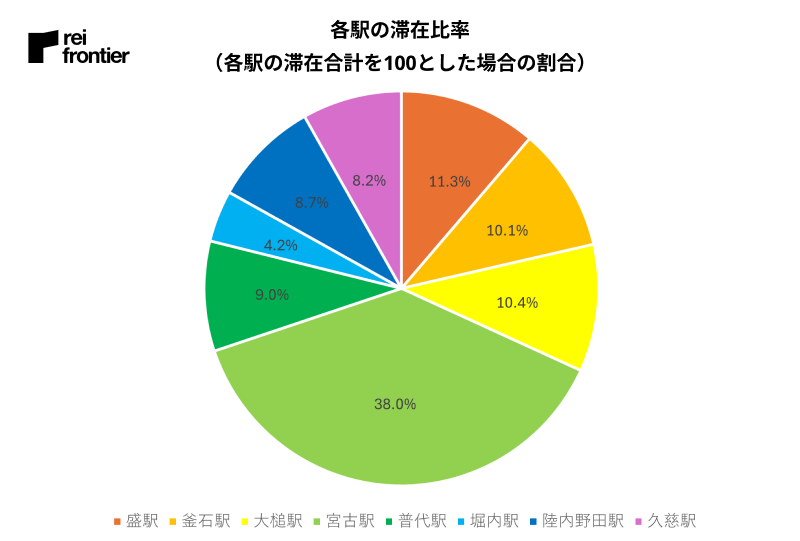 今回フォーカスした各駅の滞在比率はこのような結果となりました。