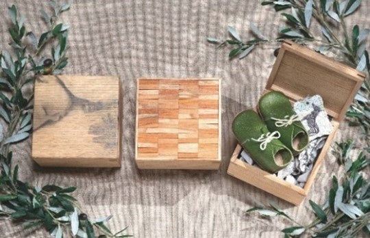 ファーストシューズや母子手帳など、思い出の詰まったアイテムを1つの箱に詰めて親御様に渡すファミリティボックスは、新しい演出なのでゲストに驚かれることが多いです。アイテムやそれにまつわるエピソードを通して、ゲストの皆さんに家族との思い出も伝わります。親御様は、宝箱をもらったような表情でボックスを開け、昔を思い出しながら箱の中身を見ています。(ベイサイド迎賓館松山/三浦舞)