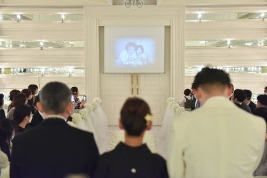 幼い頃からの写真に親御様への感謝の言葉を添えた映像を入場直前に上映すると、親御様を含めた多くのゲストが涙し、会場が一層温かで特別な空気に包まれます。披露宴はカジュアルな雰囲気を希望する方が増えている一方で、挙式は家族への感謝の想いがより伝わるような内容を希望されることが多いです。(アーヴェリール迎賓館高松/西川実那)