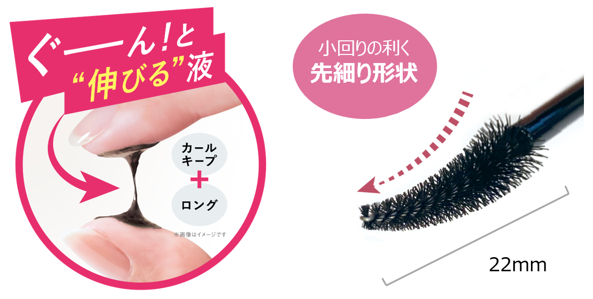 なめらかで“伸び感”のある独自のロング処方で、ひと塗りから一気に⾧く。