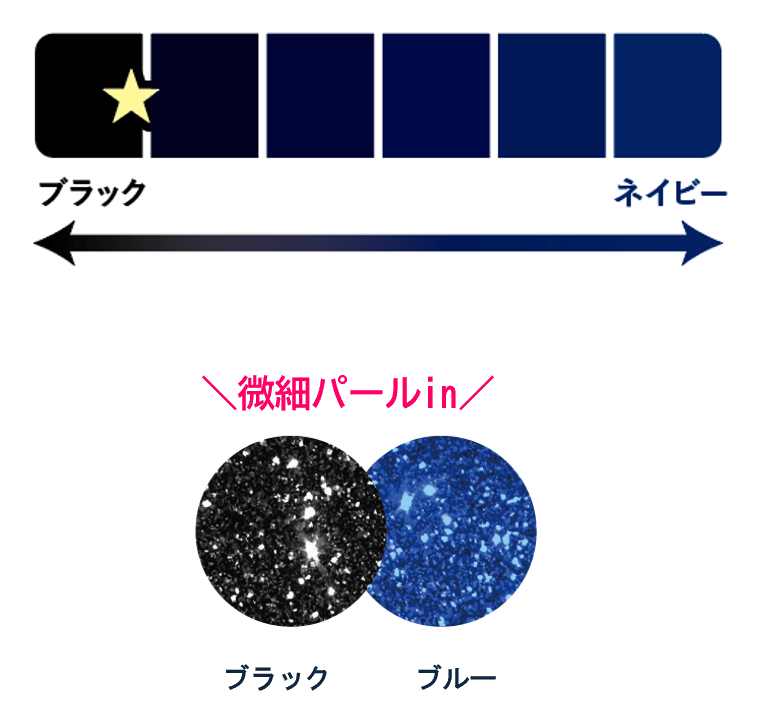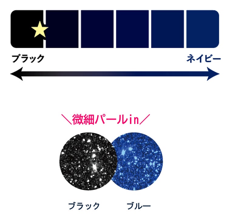 まつげを際立たせるブラックに、白目を美しく見せる*ネイビーをブレンド。ネイビー感を抑えブラックに限りなく近づけることで、青みが浮かず、どんなシーンにもなじむ絶妙な“ネイビーブラック“に仕上げました。