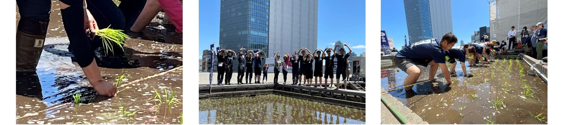 東京・銀座屋上の農園「白鶴銀座天空農園」で自社開発酒米「白鶴錦」の田植えが無事終了!