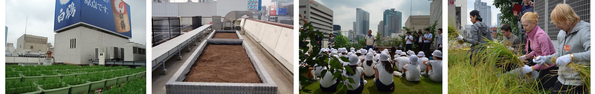 2008年 ビル屋上を大改修し、広さ約110平方メートルの屋上田圃が完成。