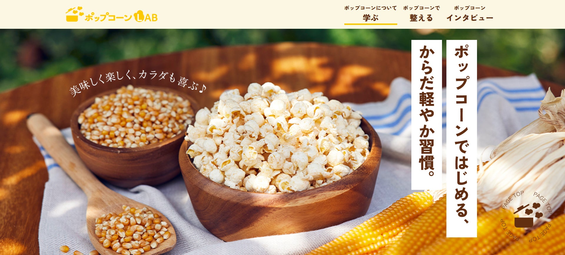 今回、研究によってポップコーンが持つ腸内環境改善効果を日本で初めて※1実証することができました。これらの成果を踏まえ、ポップコーンが持つ機能価値や魅力をより多くの方に届けるため、「ポップコーンLAB」プロジェクトを新たに立ち上げます。プロジェクトの一環として、新たに開設したWebサイト「ポップコーンLAB」では、ポップコーンの機能価値、魅力、歴史、専門家のインタビューなど役立つ情報を提供していきます。