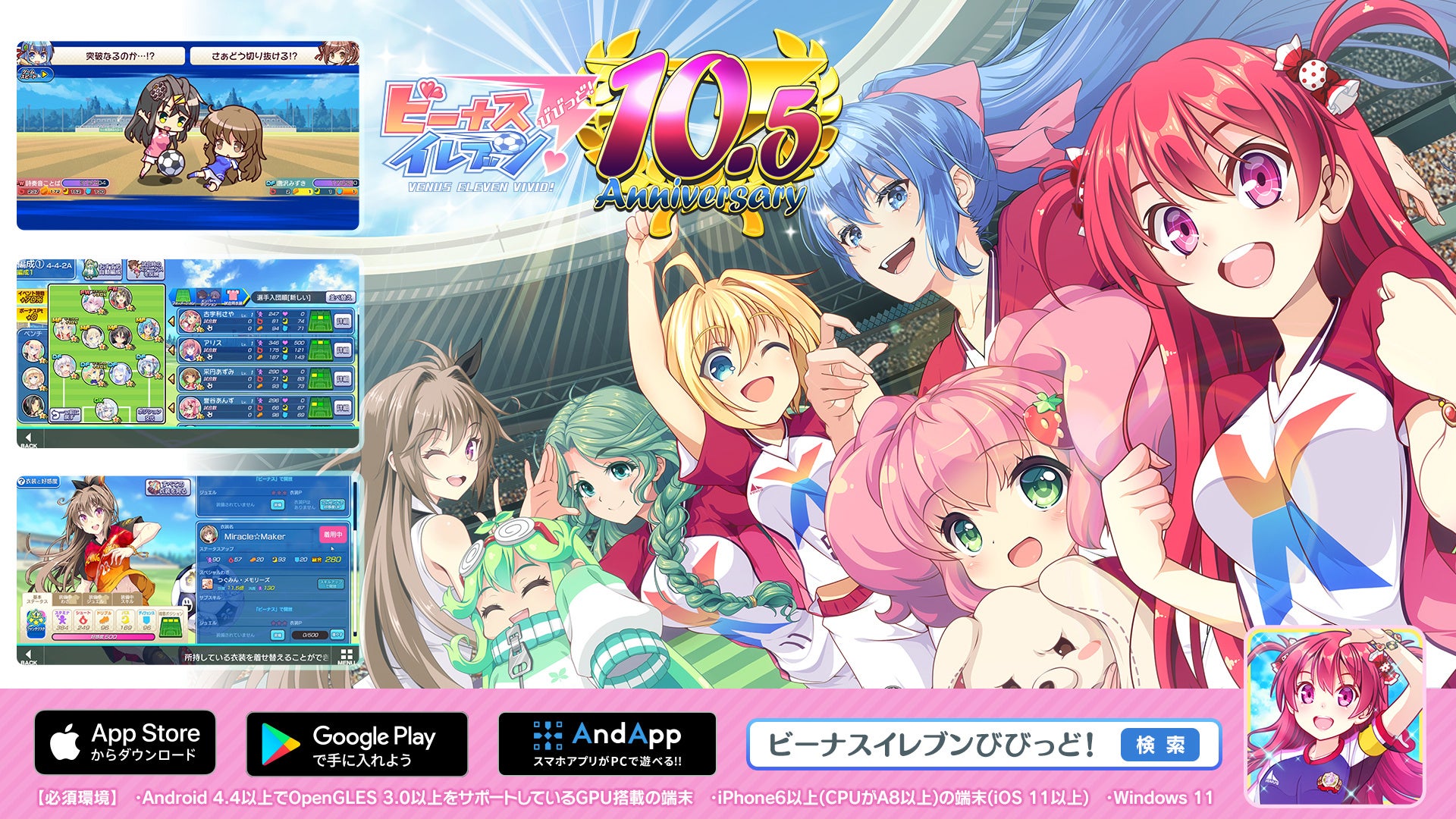 株式会社アメージングのiPhone,Android用アプリ、美少女育成サッカーシミュレーションゲーム『ビーナスイレブンびびっど!』(略称:びびび)は、2026年5月4日に「Android版サービスイン10.5周年」を、5月18日には「iOS版サービスイン10.5周年」を迎えます。