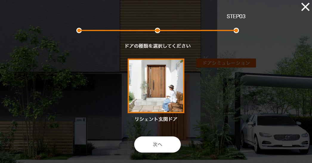 ご希望の製品を選択します。(※現時点では、リシェント玄関ドアのみ対応しています)
