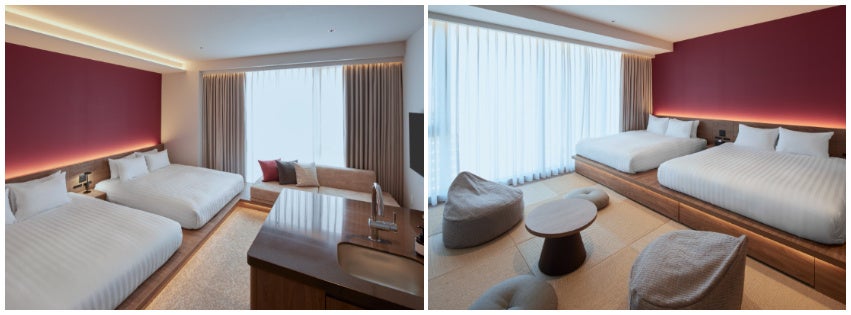 コンパクトながらも機能的なレイアウトのツインはビジネス利用に、畳をとりいれたジャパニーズモダンはご家族での滞在にもおすすめの客室です。