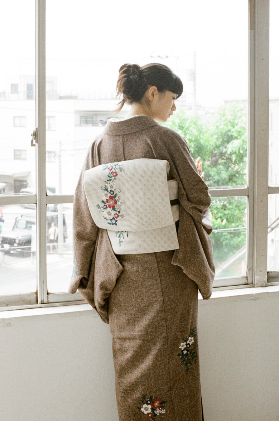 この袋帯は、"memorableきもの classic"とお揃いの刺繍が施されており、ふりそで以外にも無地のきものや小紋、紬と合わせることで、カジュアルな着こなしを楽しんでいただけます。