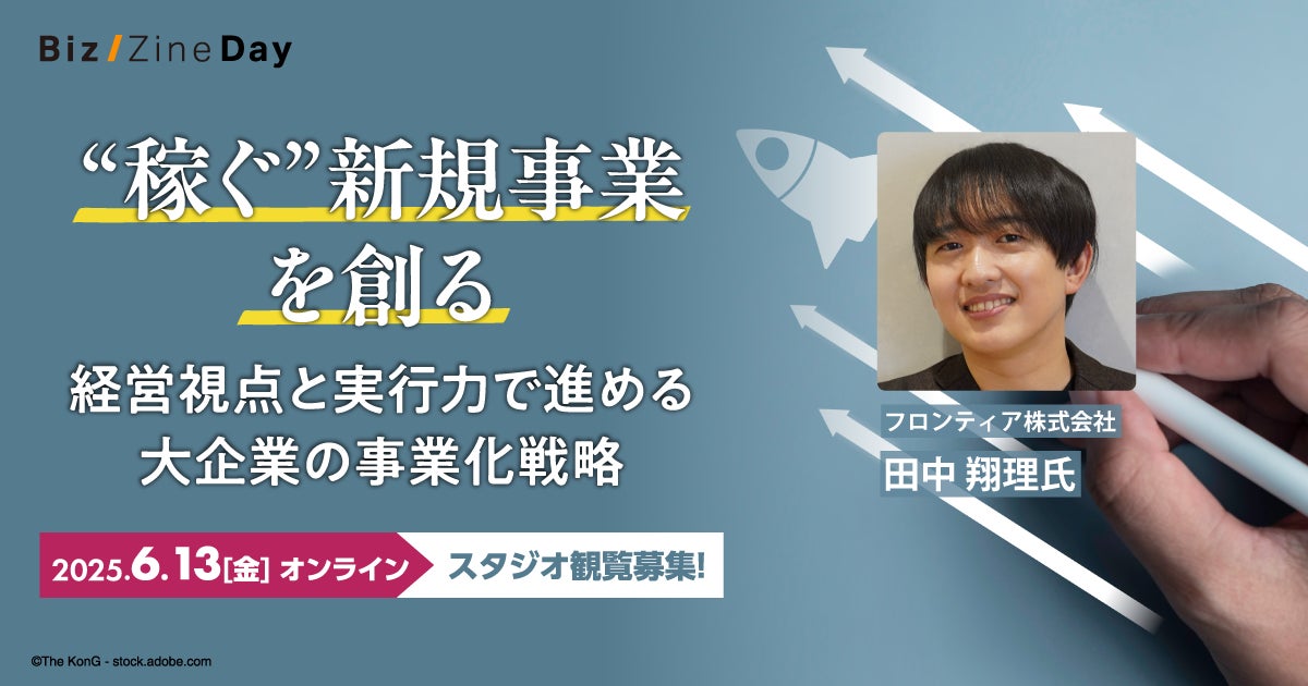 ビジネスマッチングサービス「Ready Crew(レディクル)」を運営する、フロンティア株式会社(本社:東京都渋谷区、代表取締役社長:高橋 政裕、以下 当社)は、2025年6月13日(金)に開催されるビジネスカンファレンス「Biz/Zine Day 2025 June」(主催:翔泳社)に登壇いたします。今回のカンファレンスのテーマは、“稼ぐ新規事業を創る”。技術やトレンドだけではない、「事業として成果を出す力」が問われる時代において、当社はAI×ビジネスマッチングの現場知見から、これからの事業創出のリアルを語ります。