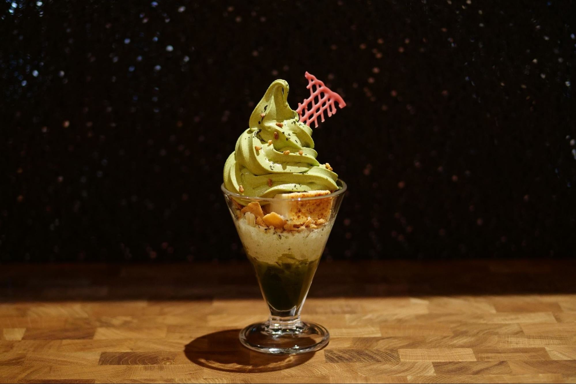 川根茶の中でも、ボディが強い希少品種「山のいぶき」をたっぷりと使用し、パフェの素材には、この「山のいぶき」に相性の良いチーズやクリームを厳選しました。