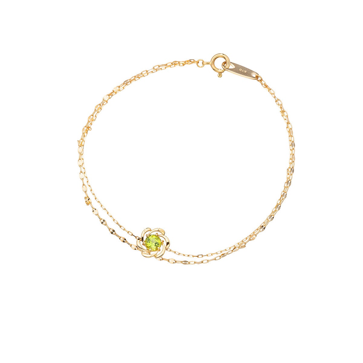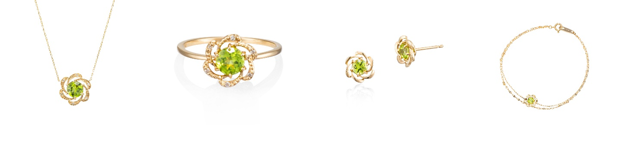 生命力に満ちた緑が一面に広がり、優雅で荘厳な雰囲気を持つヴェルサイユ庭園。そのみなぎるエネルギーをイメージし、ポジティブな力を象徴するペリドットが主役のジュエリーが登場。ペリドットの輝きを讃えるように、ゴールドの地金がサークルを描き、クラシカルで軽やかなデザインに。「太陽の石」とも言われるペリドットの明るい輝きが胸元や手元を可憐に彩ります。