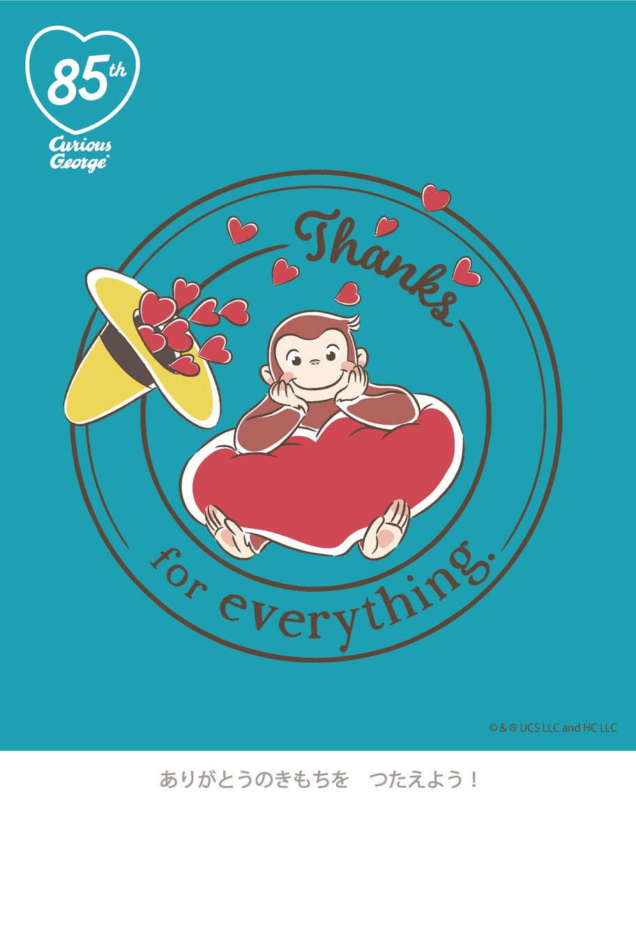 園施設を対象にした素材のダウンロードサービス、「おさるのジョージ わくわくダウンロード広場」には、期間限定で85周年記念アートを使用したオリジナルデザインのポストカードが登場します。大切な人へ日頃の感謝やメッセージを送るのにご使用いただけます。