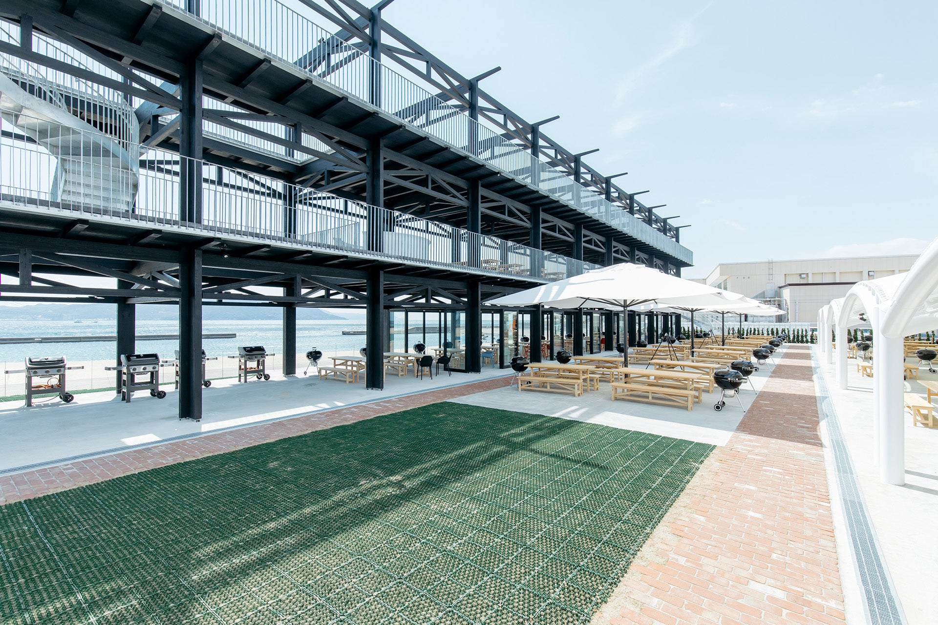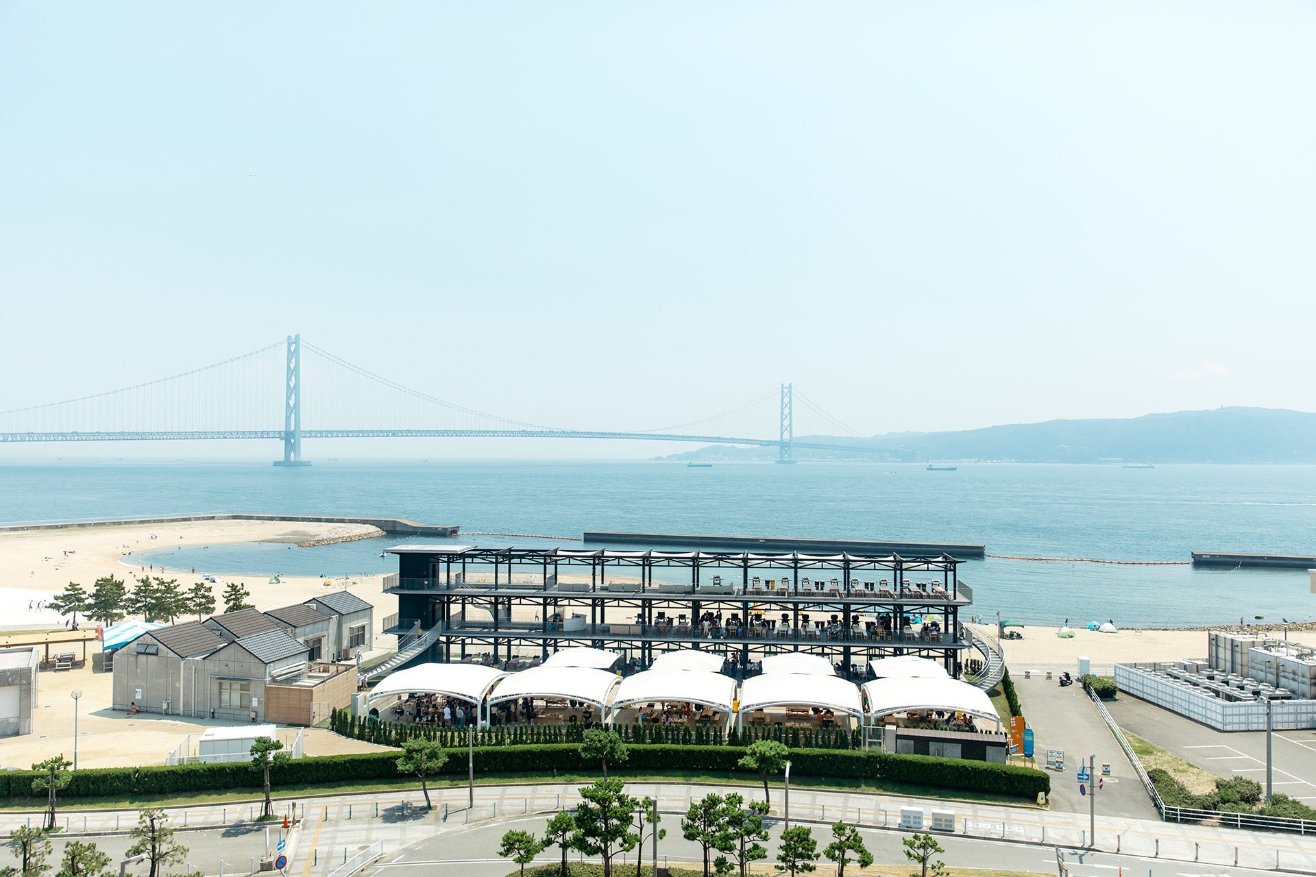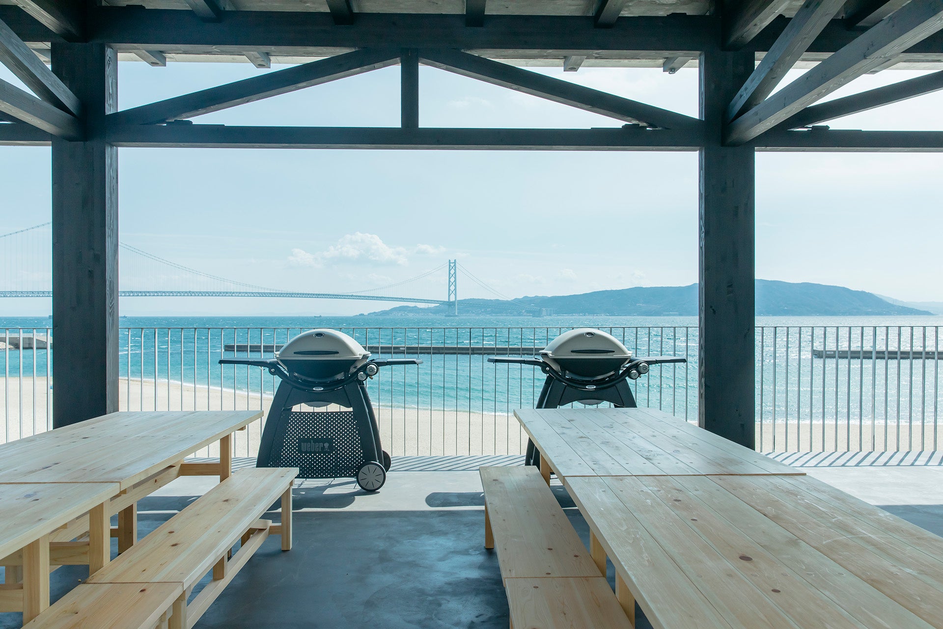 JR朝霧駅から徒歩すぐ、世界最長の吊り橋・明石海峡大橋や淡路島が一望できる大蔵海岸。海岸沿いに佇む開放的な3階建ての全天候型施設で、波の音をBGMに一年中バーベキューを楽しめるレストランです。昼は陽光の下で、夜は夕焼けや星空を眺めながら、大切な方とのかけがえのないひとときをお過ごしください。