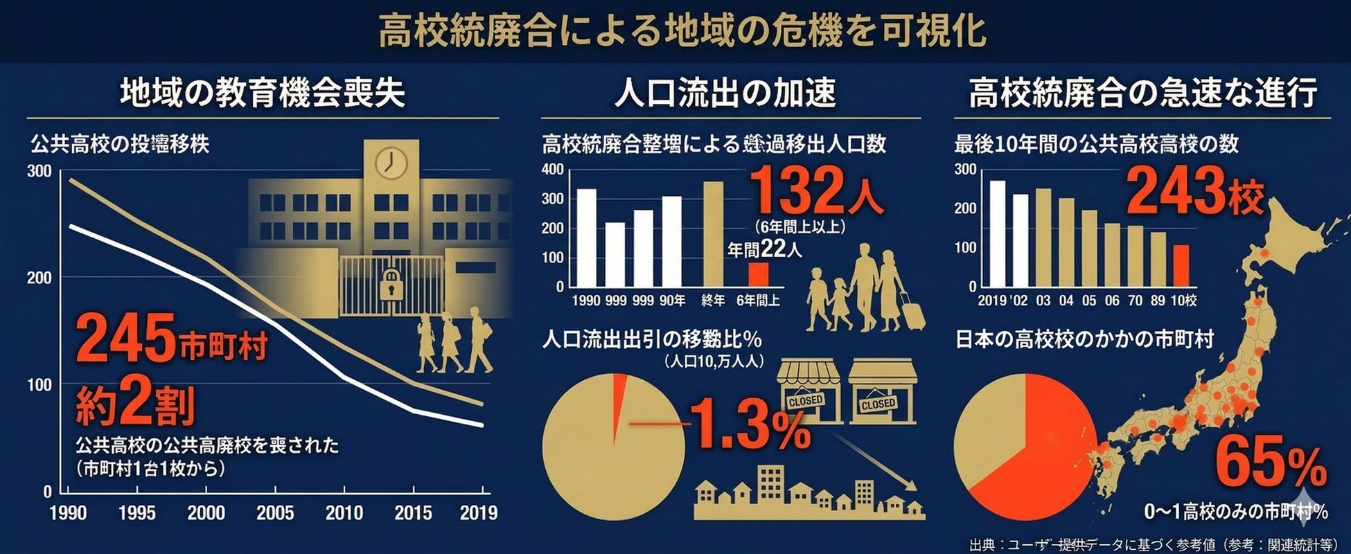 ■ 背景:30年で245市町村から高校消失、地域経済の「心臓部」が停止