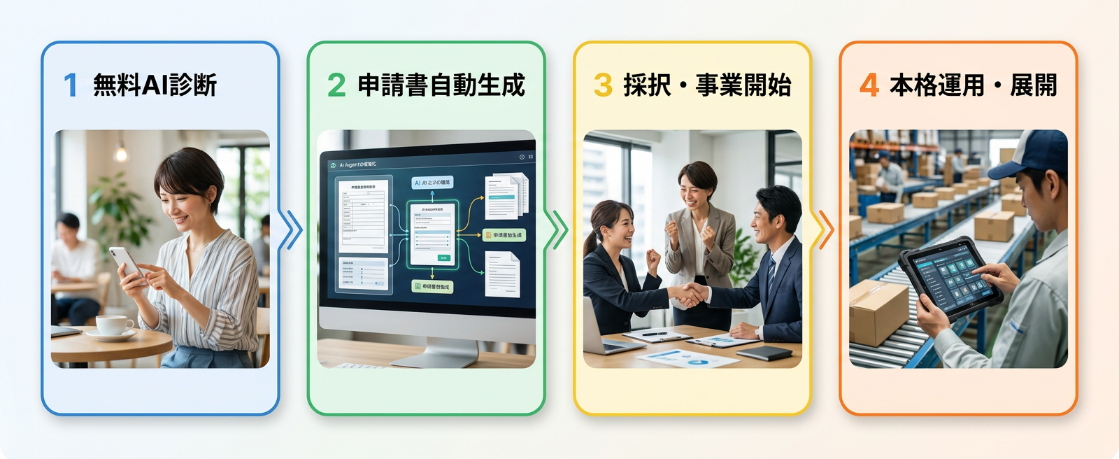 貴県の採択可能性を今すぐAI診断で確認してください。3分で完了し、申請書サンプルも即座に生成されます。