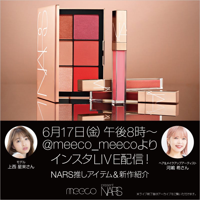 NARSは、6月17日(金)20時よりモデル 上西星来さんとヘア&メイクアップアーティスト 河嶋希さんを迎えて