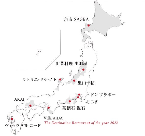 「Destination Restaurants」は、1897年に創刊され日本で一番歴史のある英字新聞The Japan Timesの発行体であるジャパンタイムズ社が主催するもので、東京23区と政令都市を除く日本各地のあらゆるジャンルのレストランから、日本の風土や精神性の細部にまで目を配り選考された、「日本人が選ぶ、世界の人々のための、日本のレストランリスト」として2021年に発足しました。