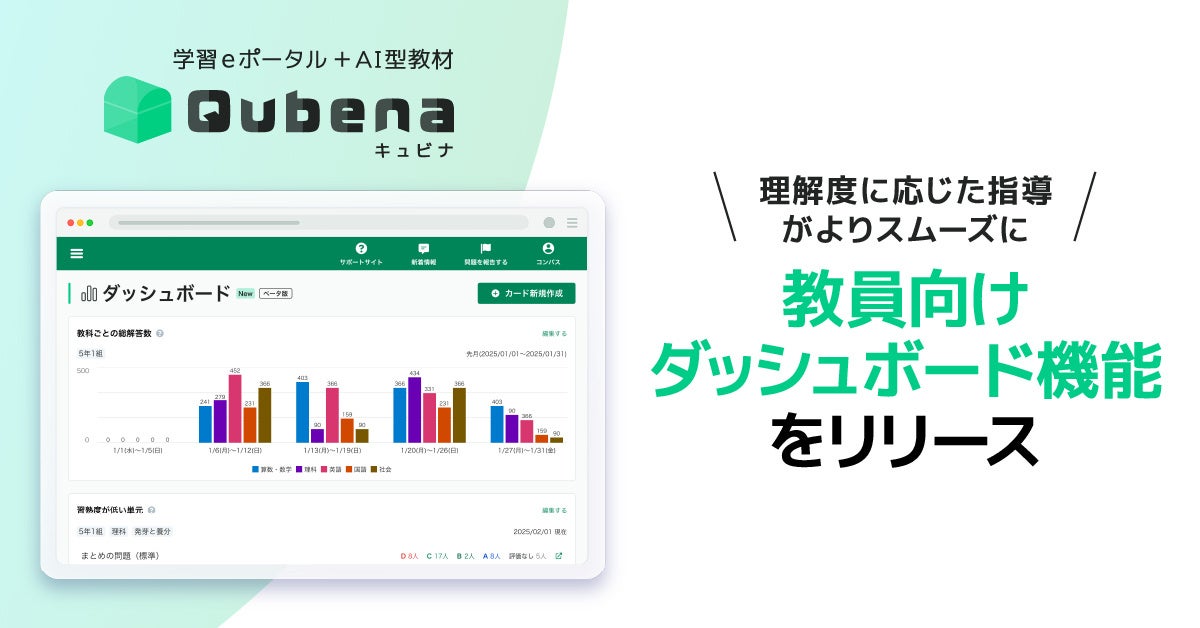 学習eポータル+AI型教材「キュビナ」 “教員向けダッシュボード機能”をリリースし、学習データの可視化・活用を強化