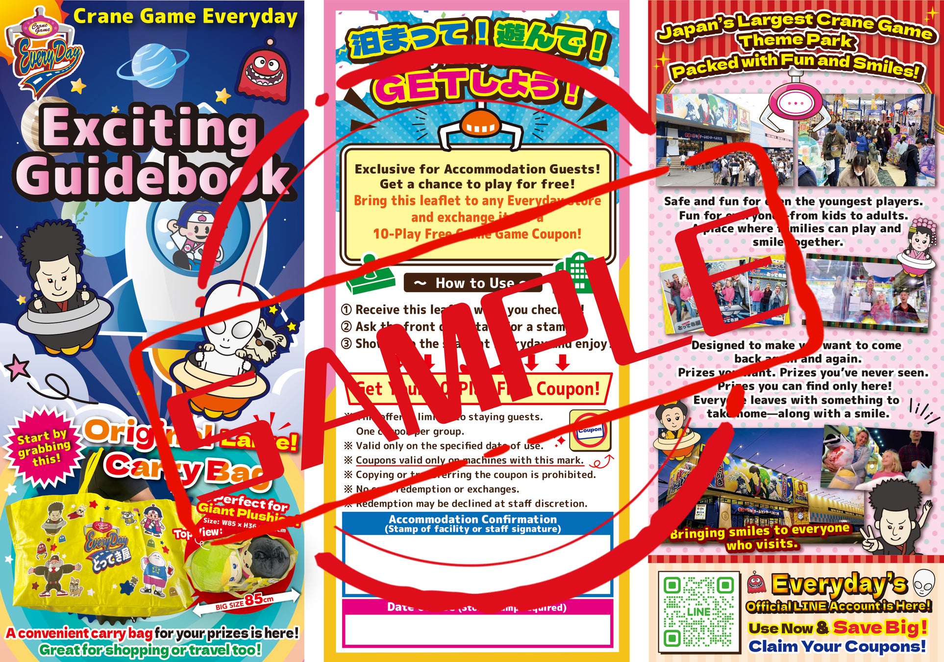 本企画では、宿泊者1組につき約1,000円相当の無料クーポンを提供。全国でも珍しい“クレーンゲーム専門店”であるエブリデイ各店舗で、観光の合間に気軽に遊べる地域密着型のエンタメ体験としてご活用いただけます。