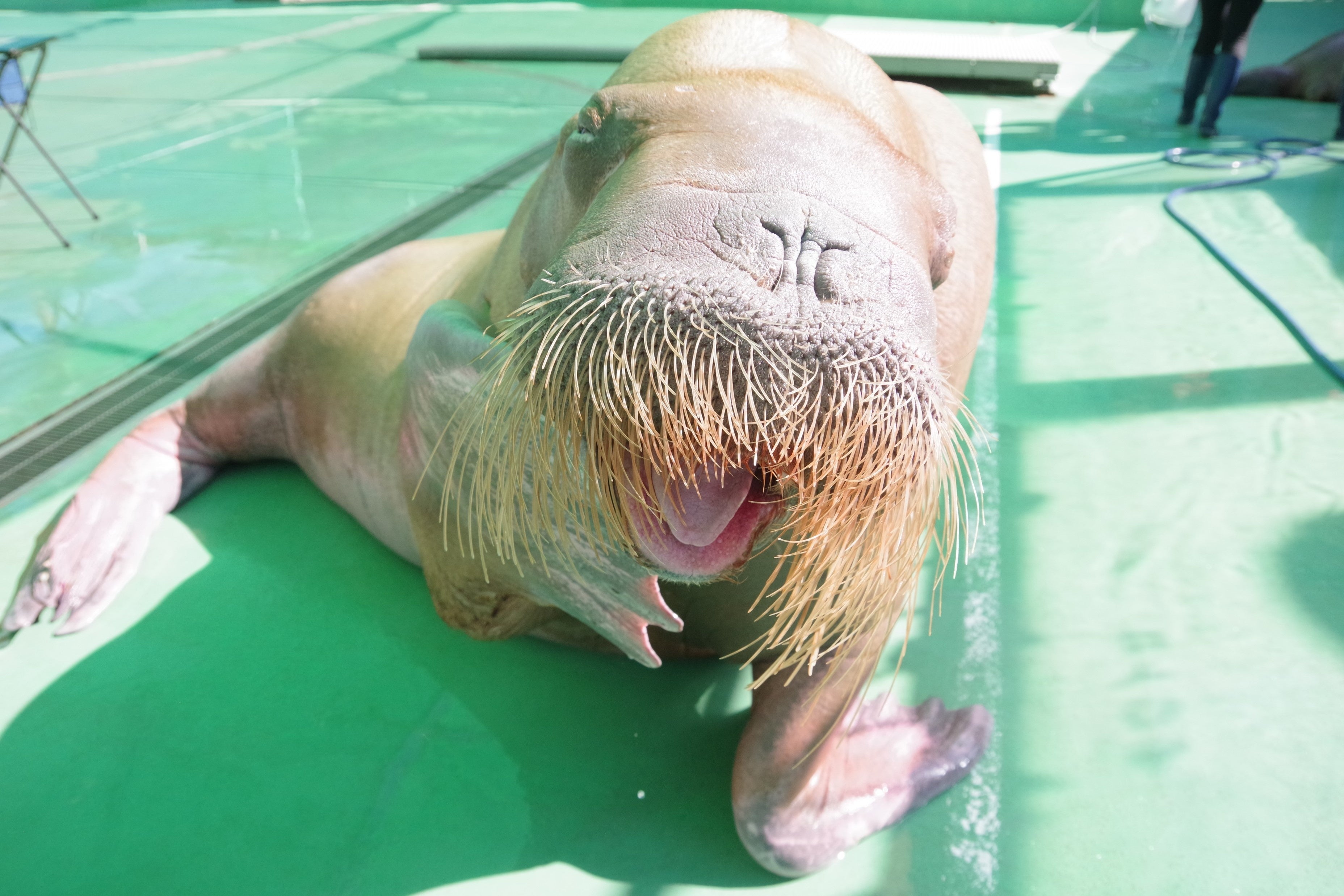 -現在:相棒のセイウチと2頭で、柵なしのふれあいイベント「セイウチお散歩タイム」で活躍中。