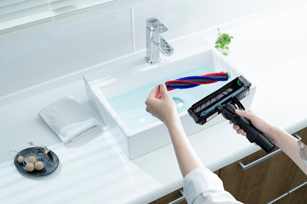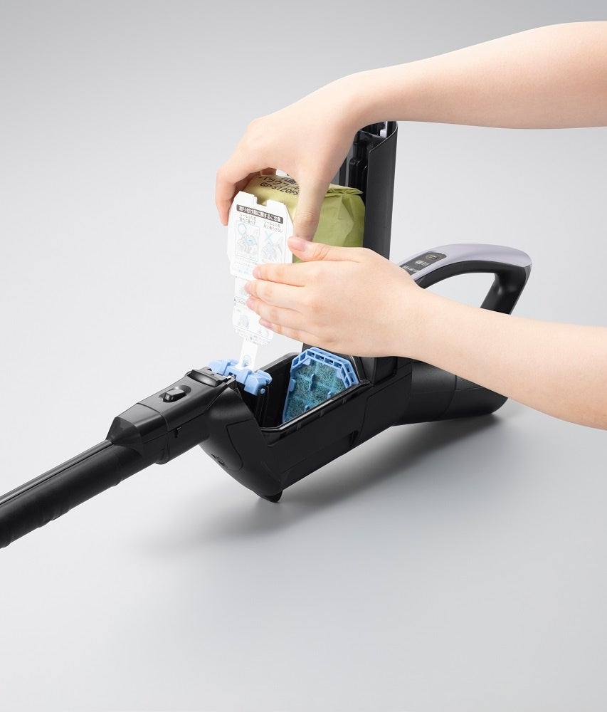 本製品は、 紙パック式集じん方式を採用。集じん容積は0.4L で、一般家庭の約2 か月分相当のごみをためられます。また、ごみ捨て時にほこりが舞いにくく、中のごみもこぼれにくい「こぼさんパック」を採用。さらに、3 層構造の紙パックなどで微細なごみを約99%逃がさない(*3)「きれいな排気」を実現しました。