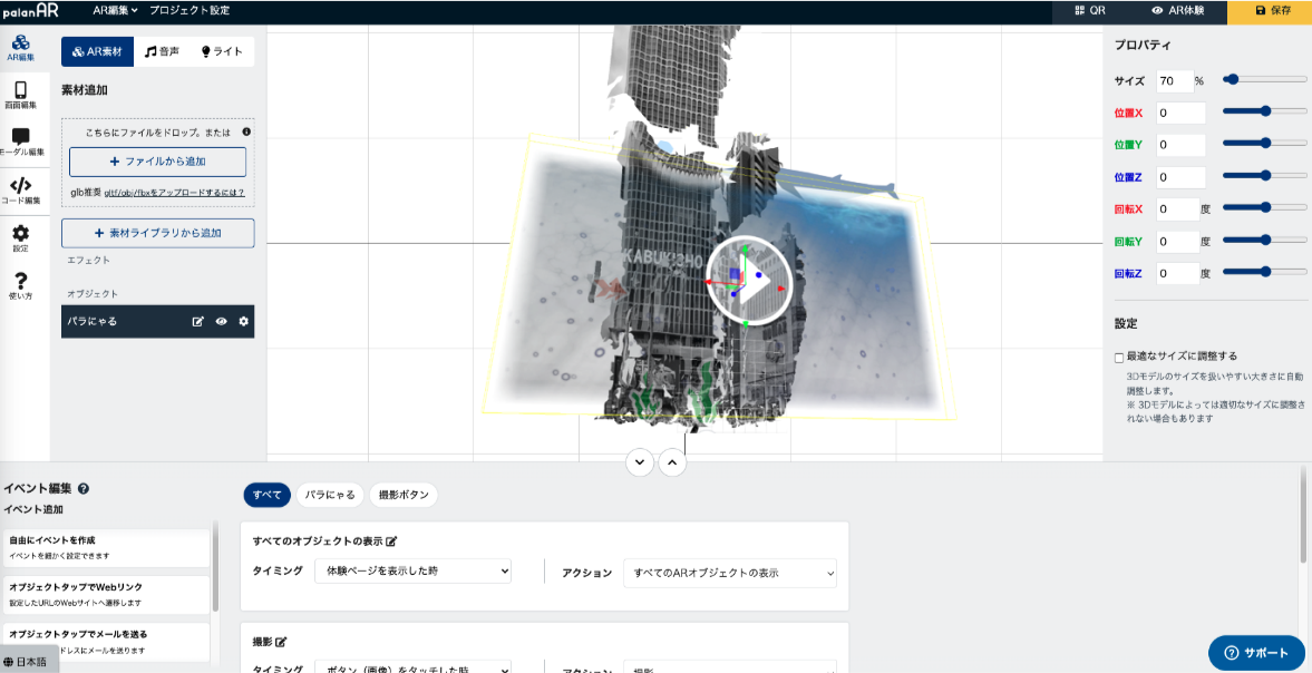 3. palanAR上で、3Dオブジェクトなどを配置しお好きなARを作成