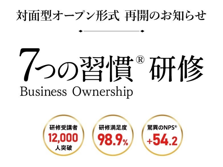 「7つの習慣® Business Ownership研修」は新型コロナウイルスの影響を鑑み、2020年度よりオンラインでの開催を継続してきました。そうした中でも多くの方にご支持いただき、研修受講者数12000人突破、研修満足度98.9%、そして顧客推奨度を示すNPSは+54.2という高い評価をいただいて参りました(※2)。
