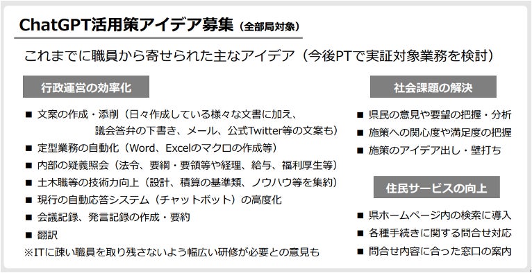 兵庫県ChatGPT等生成AI活用検討プロジェクトチーム第1回会議資料(23年5月15日)より抜粋