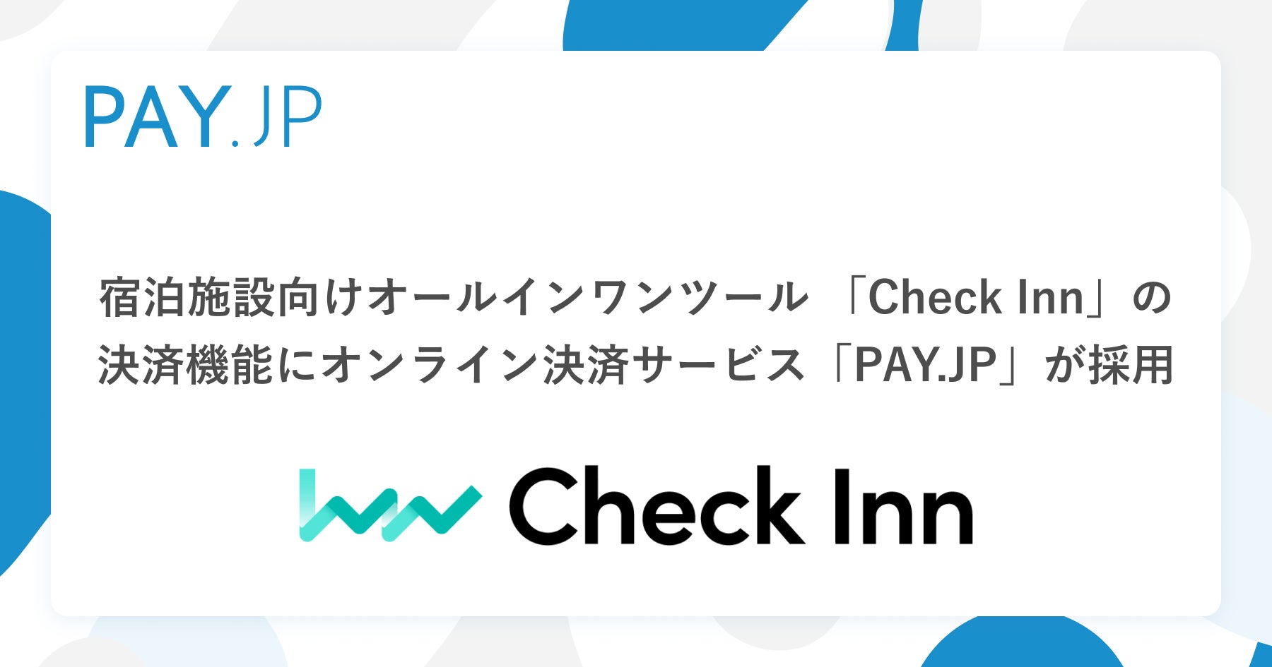 Check Inn株式会社が運営する、宿泊施設向けオールインワンツール 「Check Inn」の決済機能にオンライン決済サービス「PAY.JP」が採用