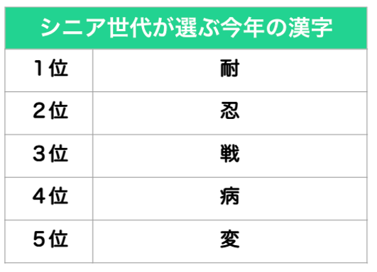 調査名称:シニア世代が選ぶ今年の漢字