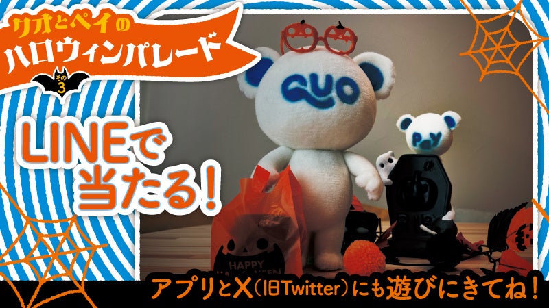 本キャンペーンでは、QUOカードPay公式キャラクター「クオとペイ」が、公式X(旧Twitter)・アプリ・LINEそれぞれ異なるハロウィンの仮装で登場し、当選者に贈られるQUOカードPayも「クオとペイ」のハロウィン限定デザインでご用意します。この機会にぜひ、キャンペーンに参加してQUOカードPayを入手してください。