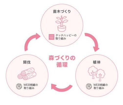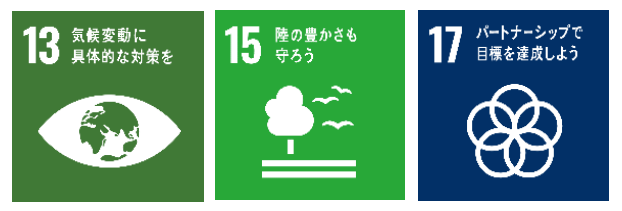 今回の「タッチハッピー 森のこと篇」では、国連が定めるSDGsの「13.気候変動に具体的な対策を」「15.陸の豊かさも守ろう」「17.パートナーシップで目標を達成しよう」の3つのゴールに寄与するものと考えています。