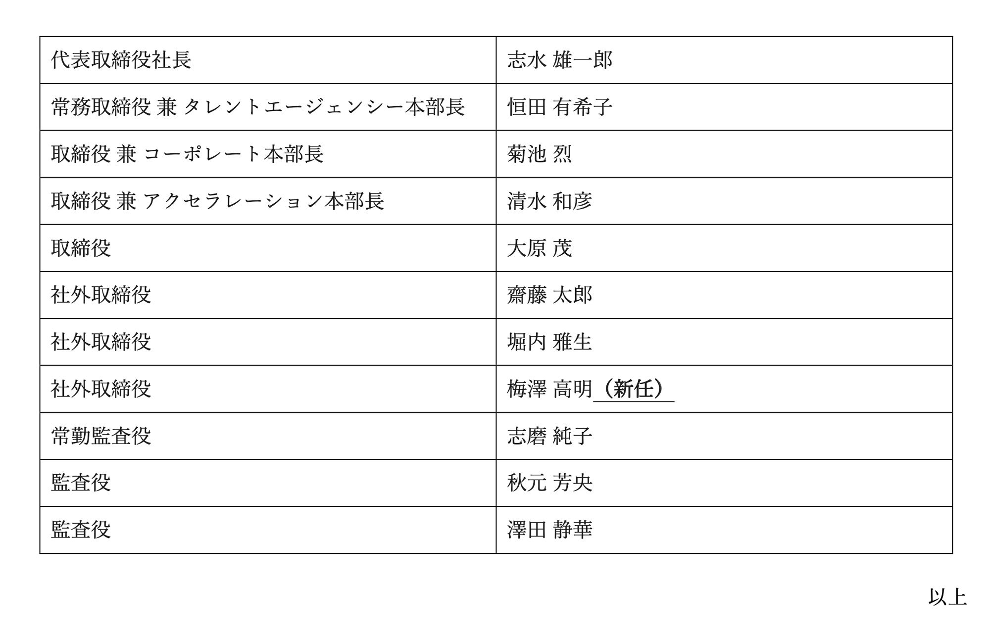 新役員体制に関するお知らせ
