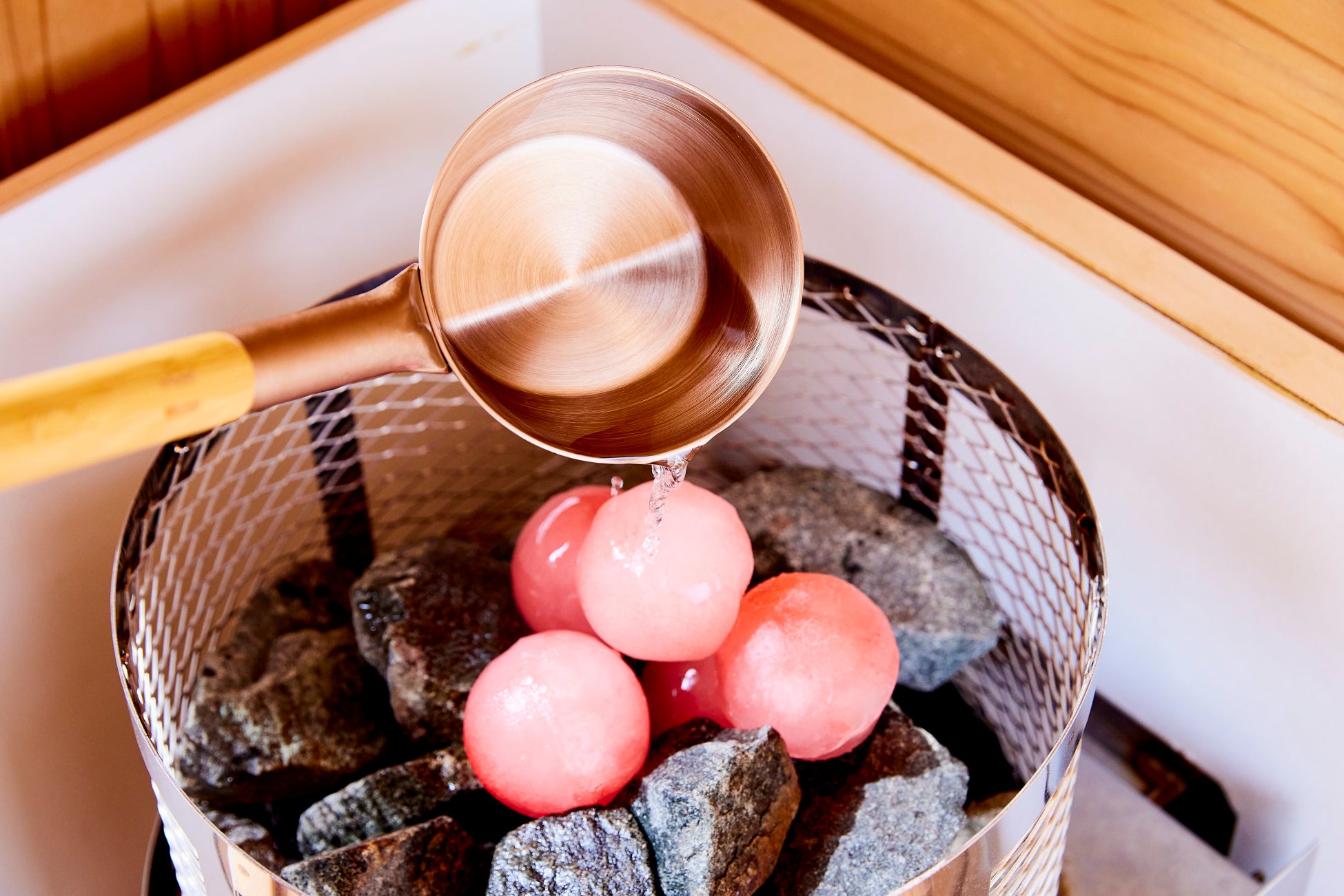 ホテルに隣接するビーチに佇むバレルサウナが、春に旬を迎えるパッションフルーツの香りに包まれます。パッションフルーツが香るアロマウォーターを凍らせたオリジナルキューゲルが発する香りの中で、コバルトブルーの海の絶景を望む、ここでしか体験することができないサウナです。