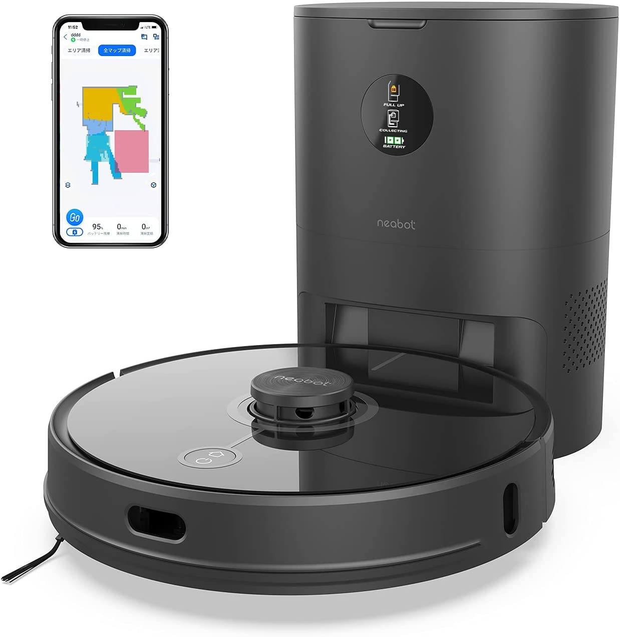 【水拭き&ゴミ収集全自動】 Neabot NoMo N2 ロボット掃除機 自動ゴミ収集ボックス付き 水拭き機能搭載 自動充電/ゴミ排出 スマートマッピング トラブル回避/衝突・落下防止 2700Pa App対応 掃除時間/範囲/回数を設定 Wi-Fi接続 Alexa対応(ブラック