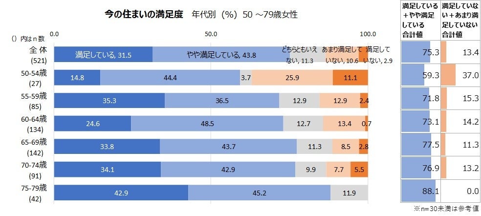 一方で、今の住まいに「満足」は75.3%で、「不安がある」を上回る。