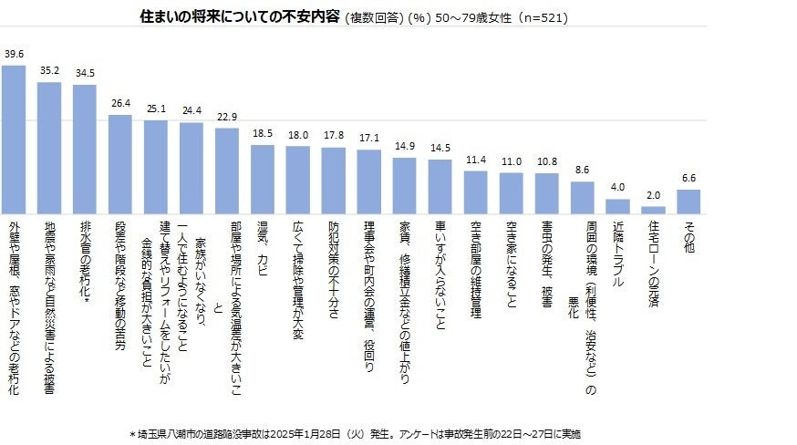 不安内容としては、家屋や排水管の老朽化、災害被害が上位にあがった。
