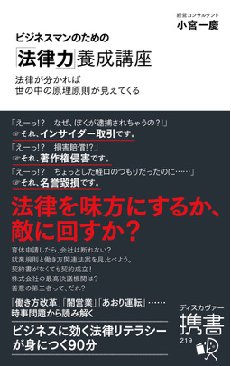 本書では話題のニュースをケーススタディとして取り上げ、以下のビジネスに関する3つの法律分野を学べるようにします。1「個人」を守るための法律とその知識(個人情報保護法、権利侵害、名誉毀損) 2「会社」を守るための法律とその知識(知的財産、会社法) 3「働く人」を守るための法律とその知識(労働基準法、セクハラ・パワハラ)
