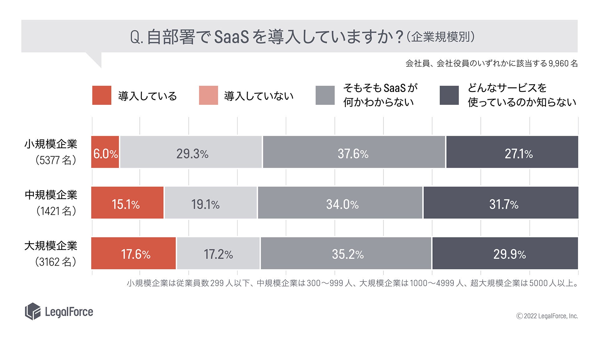 ・小規模企業(299名以下)では、 「自部署でSaaSを導入している」と回答した割合はわずか6.0%