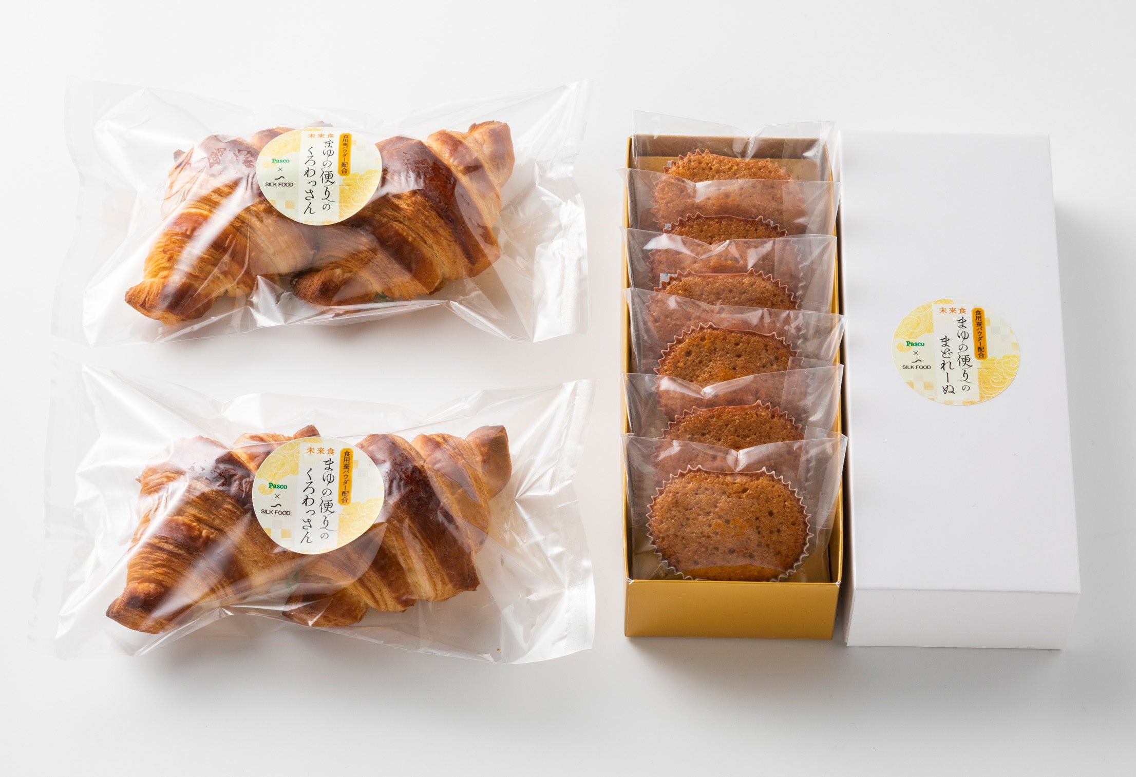「まゆの便り」の商品は、「かいこ」を原料とする食品「SILKFOOD(シルクフード)」を展開するエリー株式会社(本社:東京都中野区/代表取締役:梶栗隆弘)の食用蚕パウダーを使い、Pascoがこれまでに培ってきた製パン・製菓の技術を生かしてつくりあげています。
