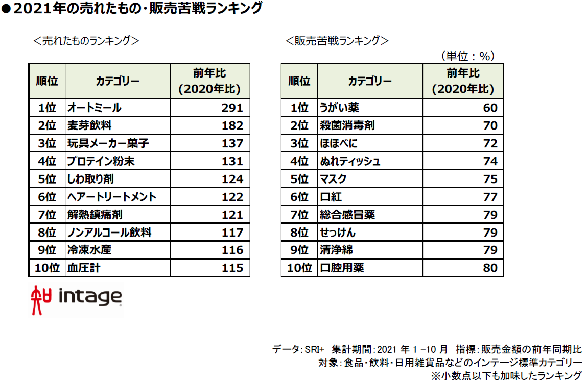 「2021年、売れたものランキング」をあわせてご参照ください。https://www.intage.co.jp/news_events/news/2021/20211208.html