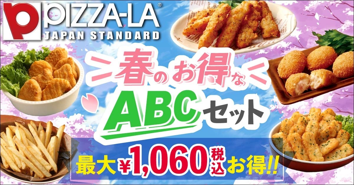 株式会社フォーシーズ(本社:東京都港区南青山 代表取締役社長:淺野幸子)が展開する宅配ピザ「PIZZA-LA」は、サイドメニューが最大1,060円(税込)もお得になる『春のお得なABCセット』を、2022年3月3日(木)から期間限定で販売いたします。