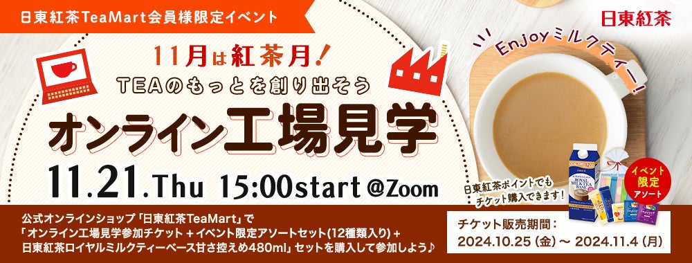 <日東紅茶TeaMart会員様限定イベント>公式オンラインショップ「日東紅茶TeaMart」でチケットを購入して参加しよう!11月は紅茶月!「オンライン工場見学」開催決定