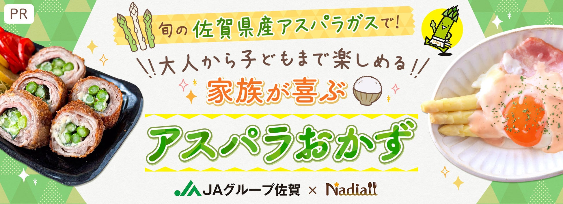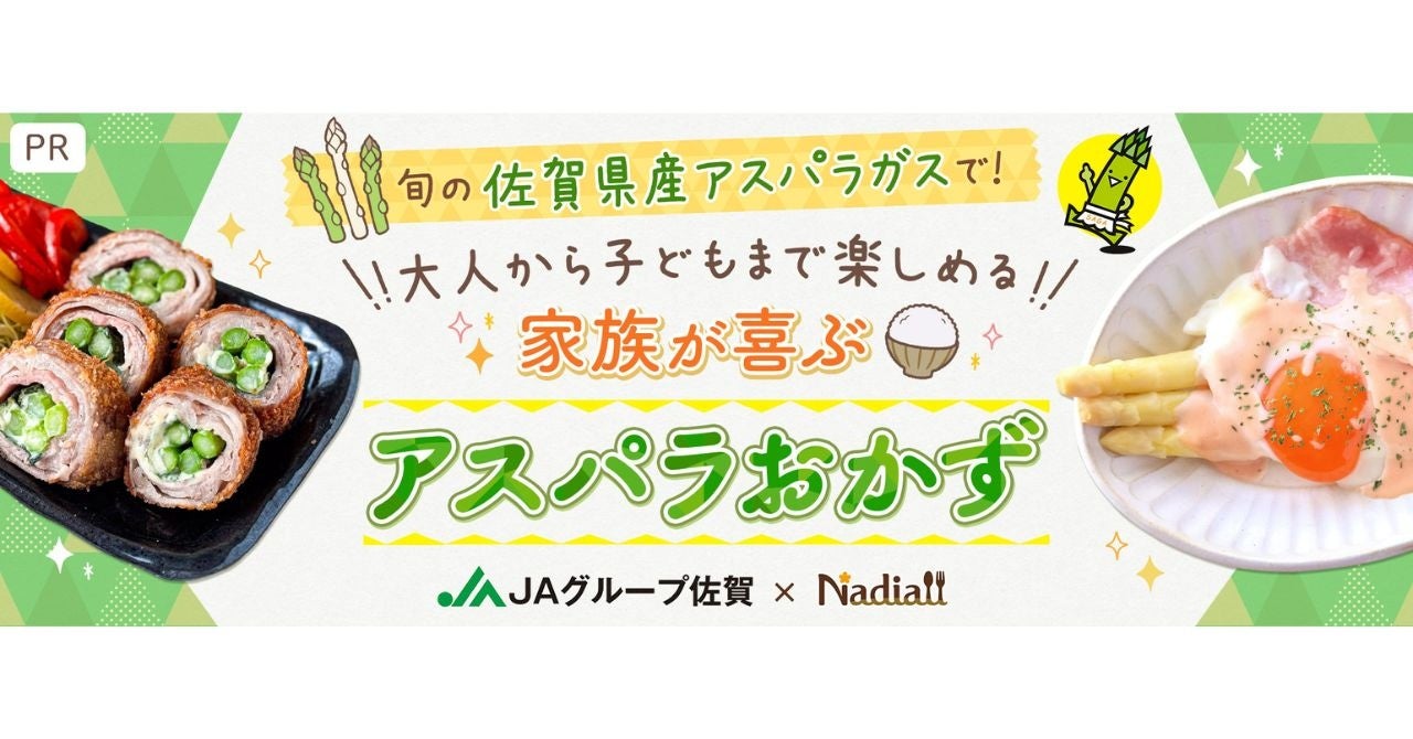Nadia株式会社(東京都港区/代表取締役社長 葛城嘉紀 以下「Nadia」)とJAグループ佐賀がタイアップし、「佐賀県産アスパラガス」の認知・消費拡大を目的に、特別企画ページ「旬の佐賀県産アスパラガスで!家族が喜ぶアスパラおかず」を公開いたします。