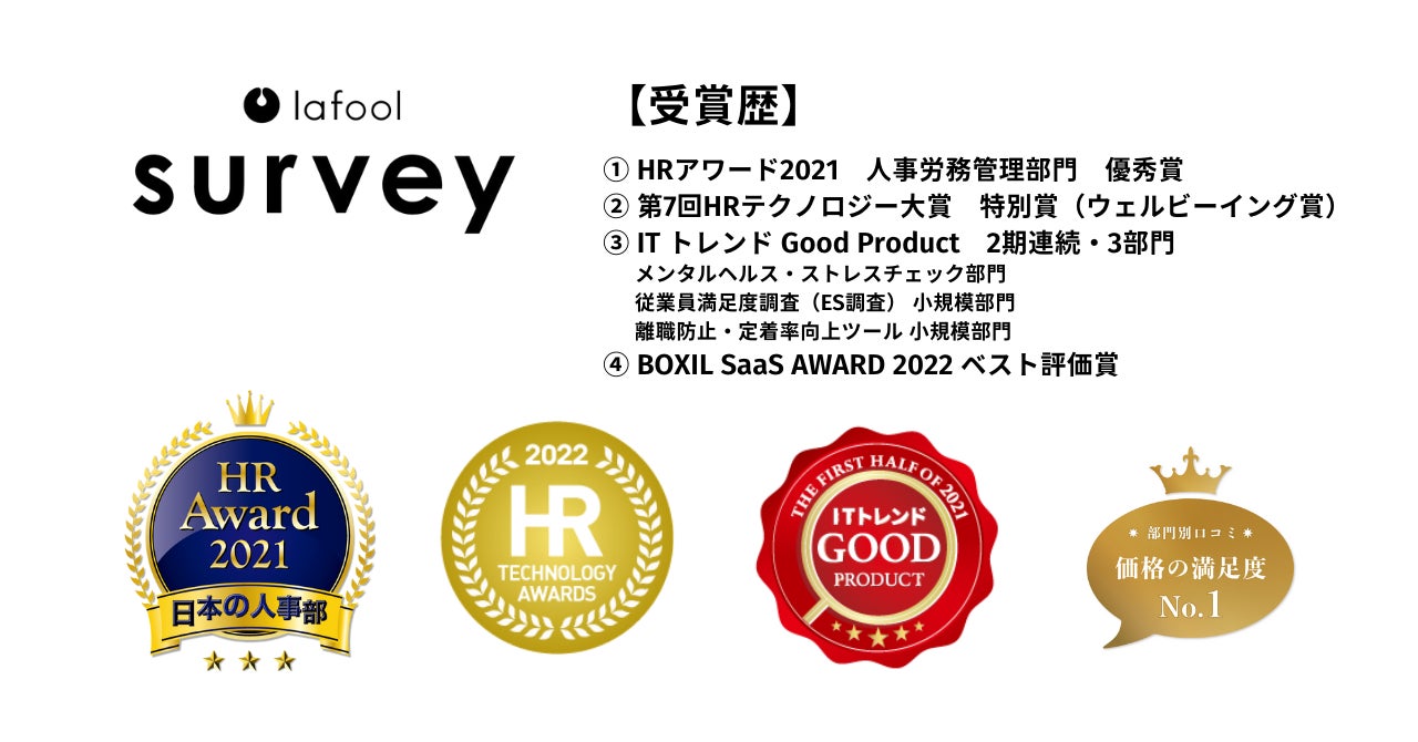 ラフールサーベイの提供内容における社会貢献性、信頼感、技術の先進性、顧客の経営改革に貢献しているサービスとして評価され、この度の受賞内容が決定されました。