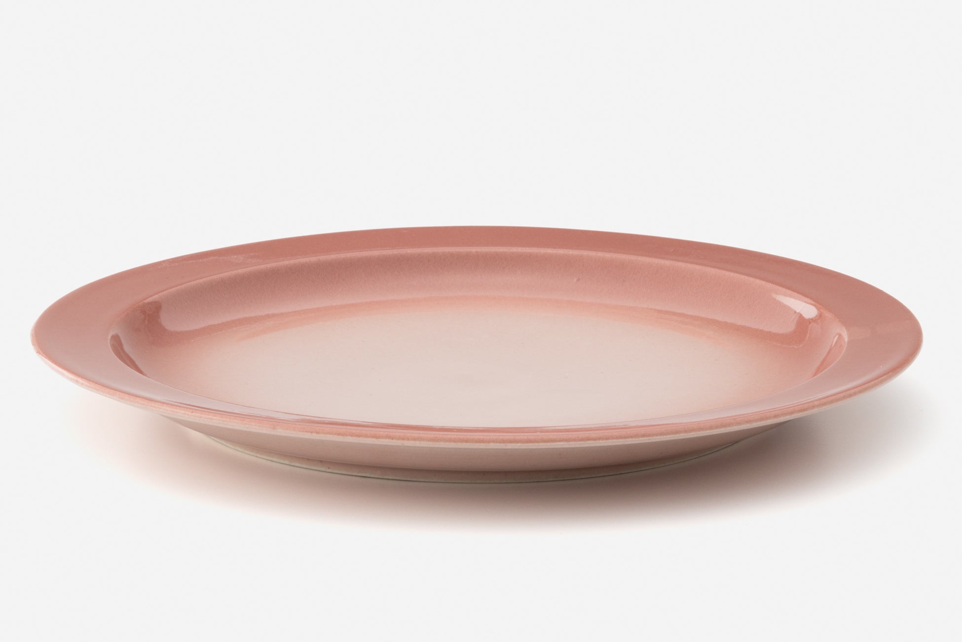 フチが広く、持ち運びやすい形のプレートです。濃いピンク色のグラデーションが映え、料理が華やかに見えます。同シリーズのマグカップや、ピンク色のお茶碗などと合わせてコーディネートするのがおすすめです。