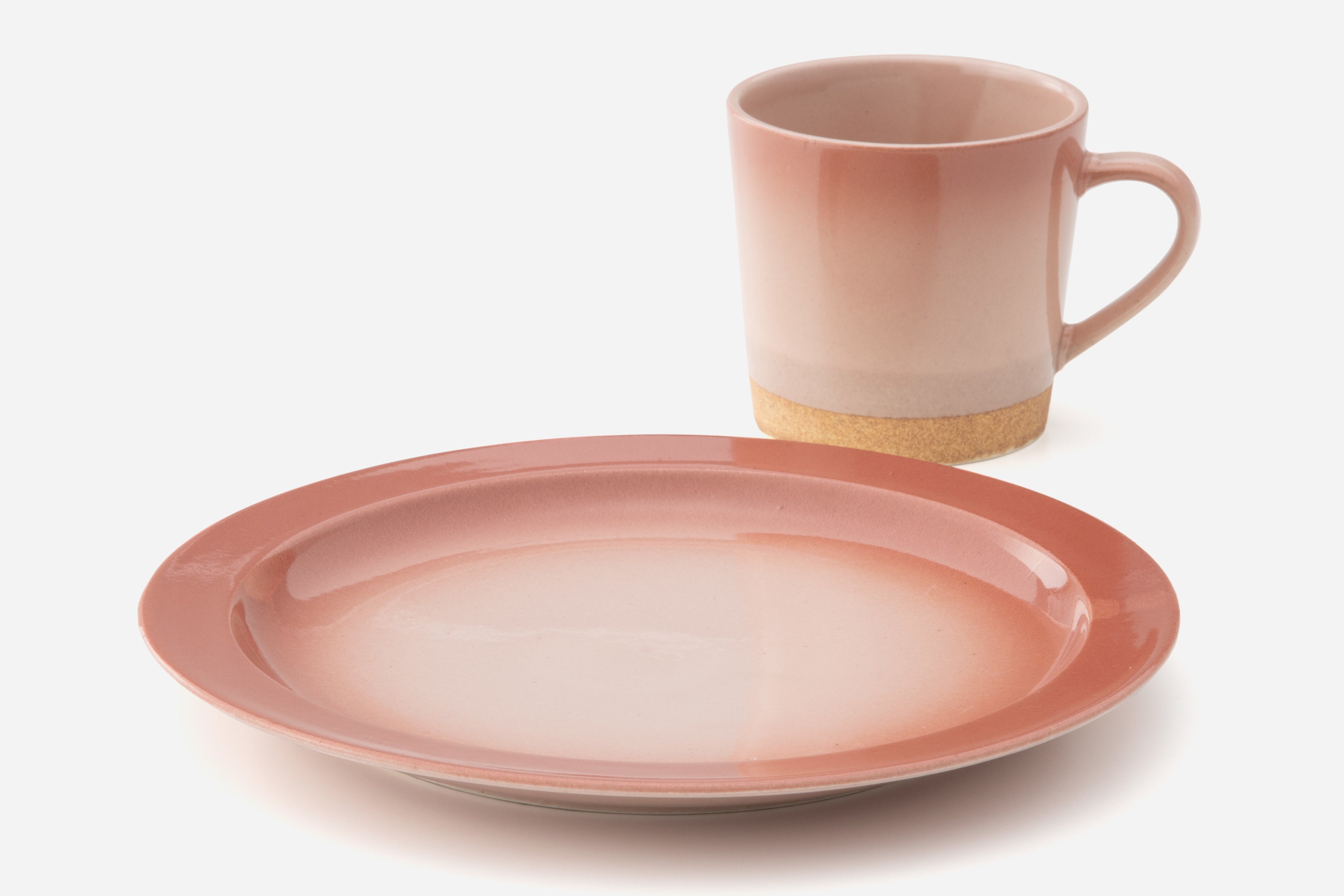 シンプルな形にグラデーションのポイントが映え、思わずほっこりした気分になれるマグカップです。下方には粗い砂目のデザインを施し、よりクラフト感のある仕上がりに。同シリーズのプレートと一緒に、パンやサラダとカフェラテなど、優雅な朝食を彩るのにぴったりのラインナップです。