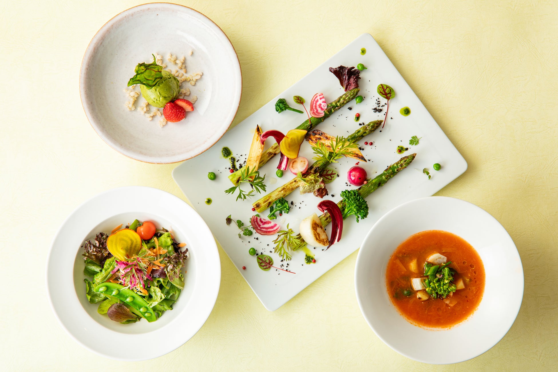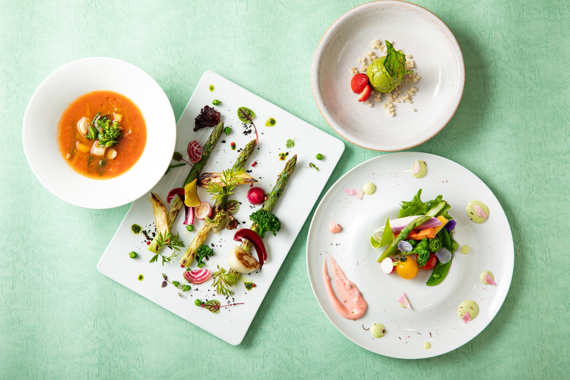 春の門出に華を添える会食におすすめな彩りカラフルなコース料理や多様化する食・ライフスタイルにも対応する東京野菜・大豆ミートを使ったヴィーガンメニューも登場!「サザンタワーダイニング」の春メニュー