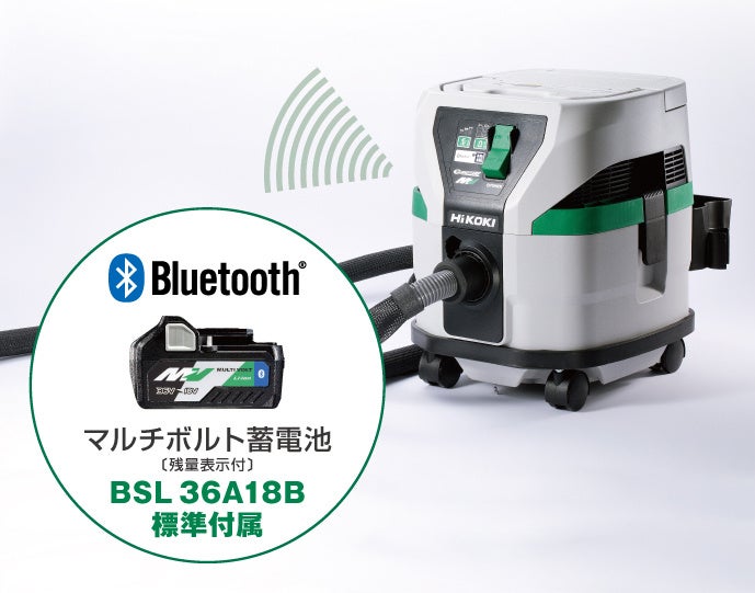 Bluetooth®蓄電池(BSL36A18B)が標準付属※2しているので、集じん機と無線で連動※3ができ、コードに煩わされずに快適な作業ができます。