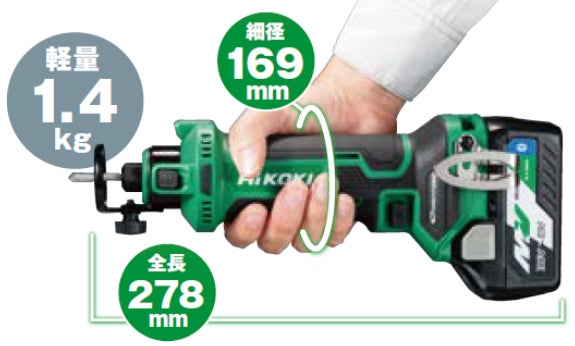 握り部周長が169mmと握りやすい細径と軽量コンパクトボディで軽快に作業できます。